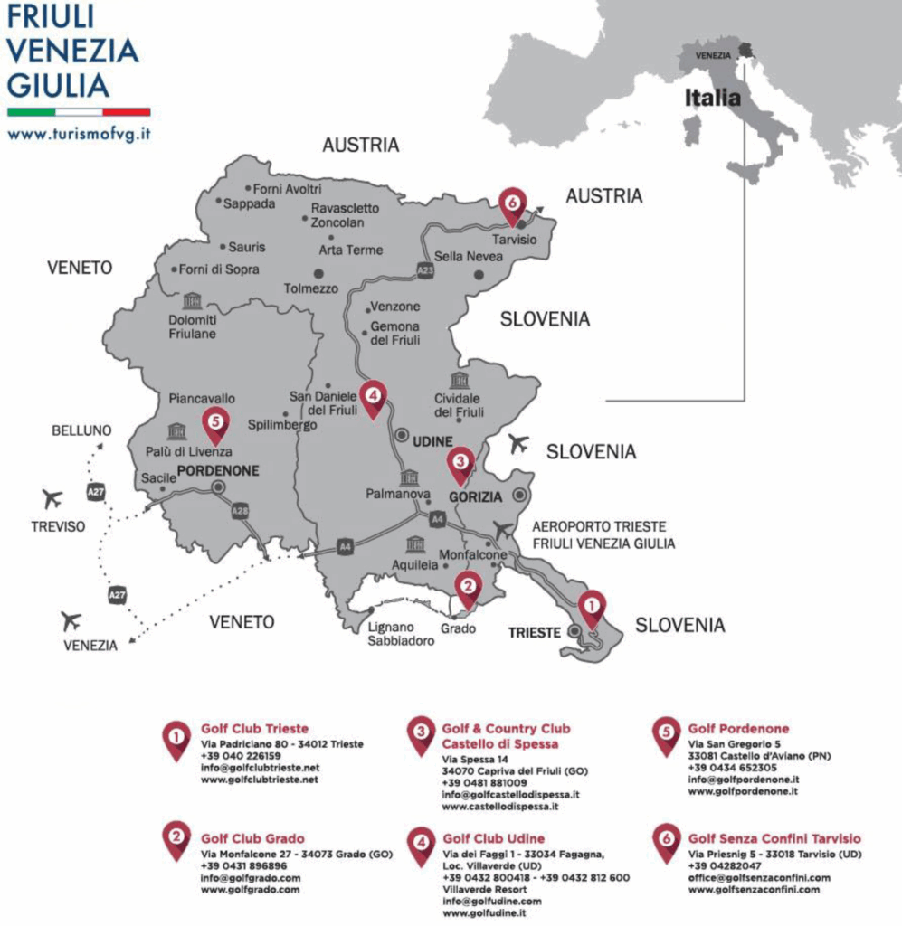 Friuli Venezia has nine different 18-hole golf courses to choose from across the region, offering different experiences and landscapes, with some in the foothills of the mountains, some on the plains, and some right on the coast.