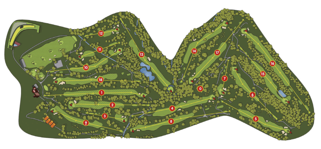 The course is a parkland course, but with plenty of old and well-established birch and oak trees, over 7000. If you are lucky, you can spot both stork and ibis up in the trees. The course was designed by John Harris as a 9-hole course in the 70s and later expanded to 18 holes by Marco Croze. Playing at 6290 meters and par 72, the course is of championship quality and hosts international events annually such as the Senior European Tour.