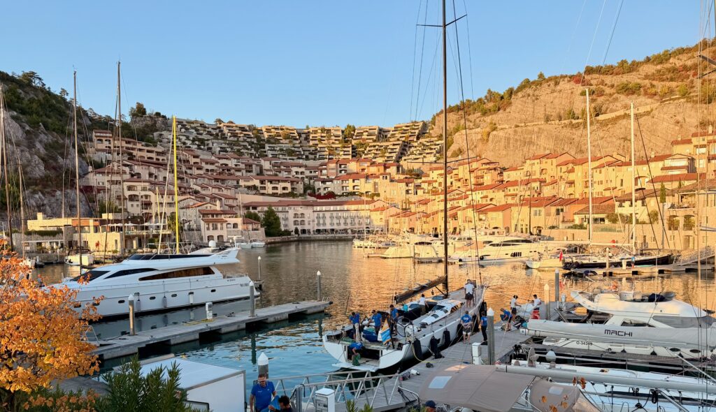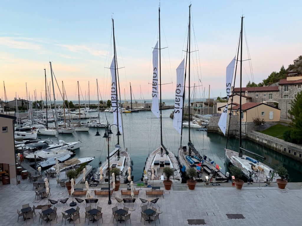 As we reached the waterfront, the Grand Canal was crowded with sailors and visitors all mingling as boats made their final pre-race checks, and crews in branded jackets hurried between harborside stalls. The quay was lined with pop-up tents, sponsor banners, and the scent of street food. As the sun started to set, the gulf was scattered with yachts, some practicing starts, others simply showing off their colors.